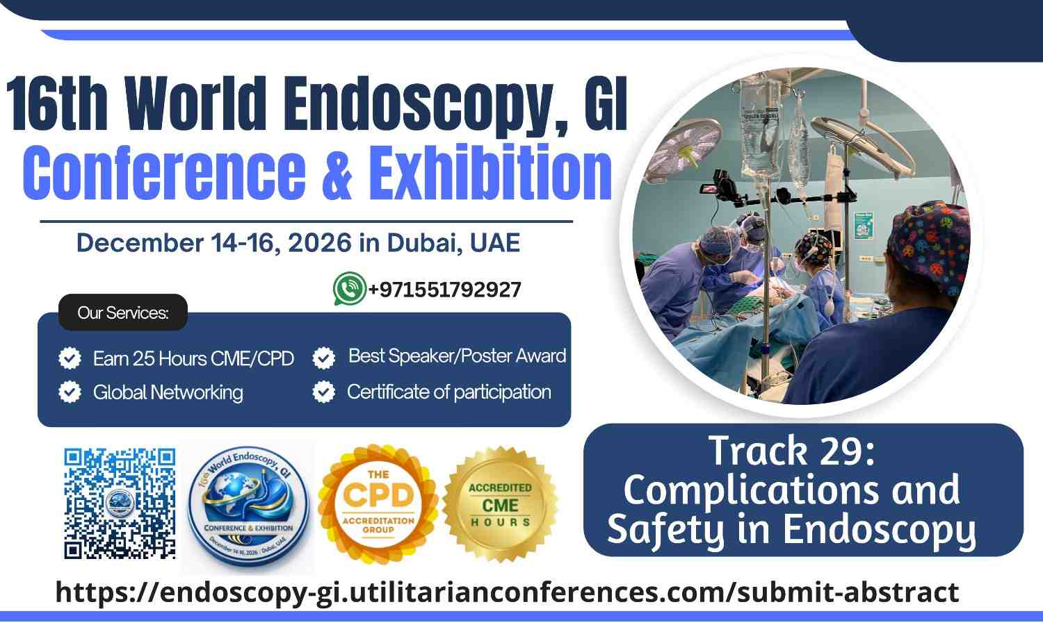 The 16th World Endoscopy, GI Conference & Exhibition is scheduled for December 14-16, 2026, in Dubai, UAE. This conference will feature a variety of tracks focusing on different aspects of endoscopy and gastroenterology. One of the key tracks is Track 16: Complications of Endoscopy, which will delve into the various challenges and safety considerations associated with endoscopic procedures. Track 29: Complications and Safety in Endoscopy is expected to cover topics such as