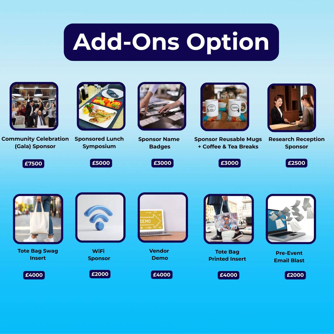 “We also provide an expanded exhibitor table option for those who wish to create a stronger impact and showcase more extensively. This premium space is offered at an additional cost of £5000.”