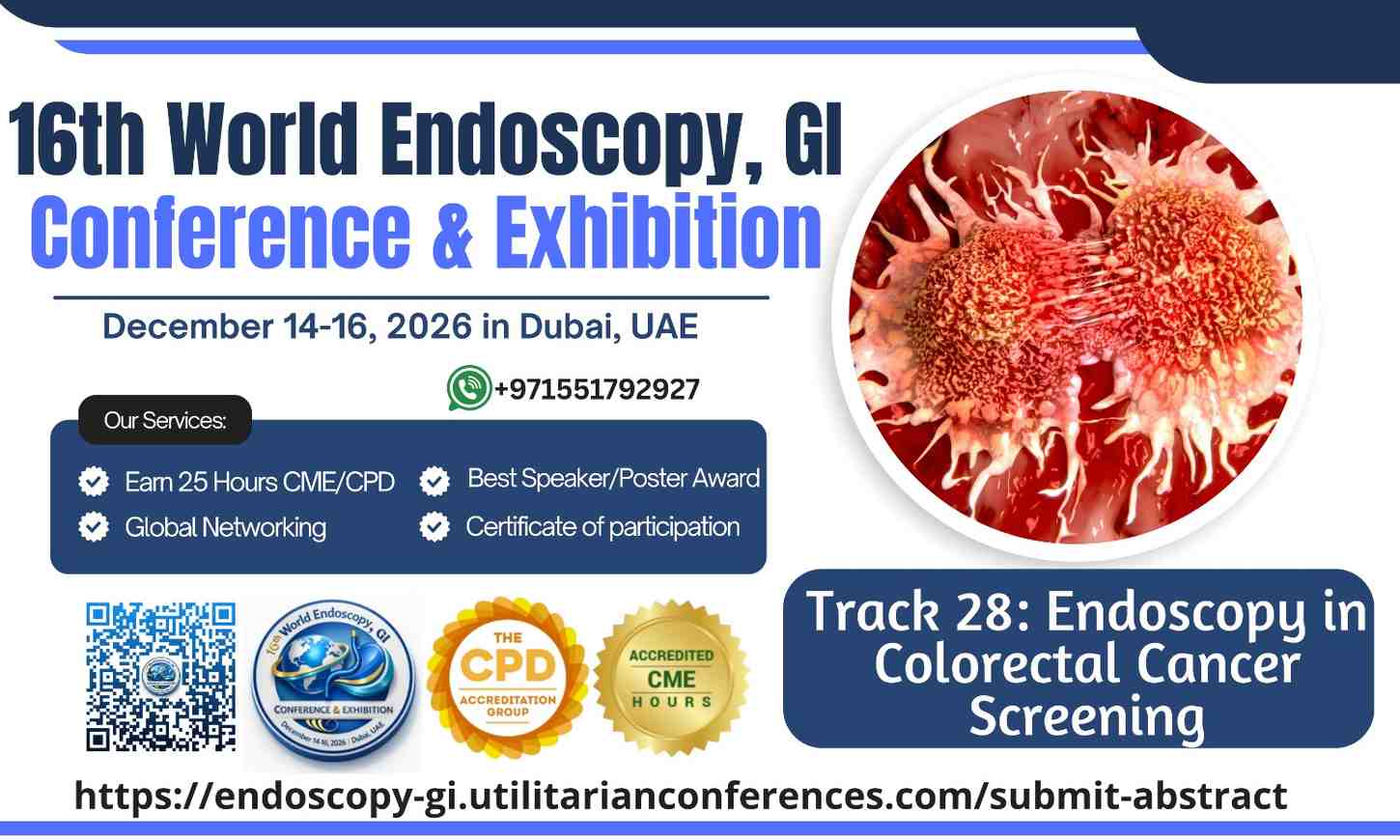 The 16th World Endoscopy, GI Conference & Exhibition is scheduled for December 14-16, 2026, in Dubai, UAE, offering both in-person and virtual participation options. While the detailed agenda is still under development, the conference typically features various tracks focusing on specialized areas within endoscopy and gastroenterology. One of the anticipated tracks is Endoscopy in Colorectal Cancer Screening, which is expected to cover topics such as: