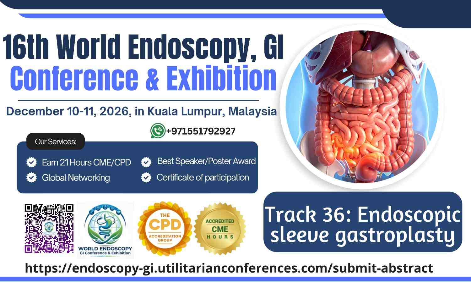 The 16th World Endoscopy, GI Conference & Exhibition is scheduled for December 10-11, 2025, in Kuala Lumpur, Malaysia. One of the key tracks is Track 36: Endoscopic Sleeve Gastroplasty, focusing on the latest advancements in this minimally invasive weight loss procedure.