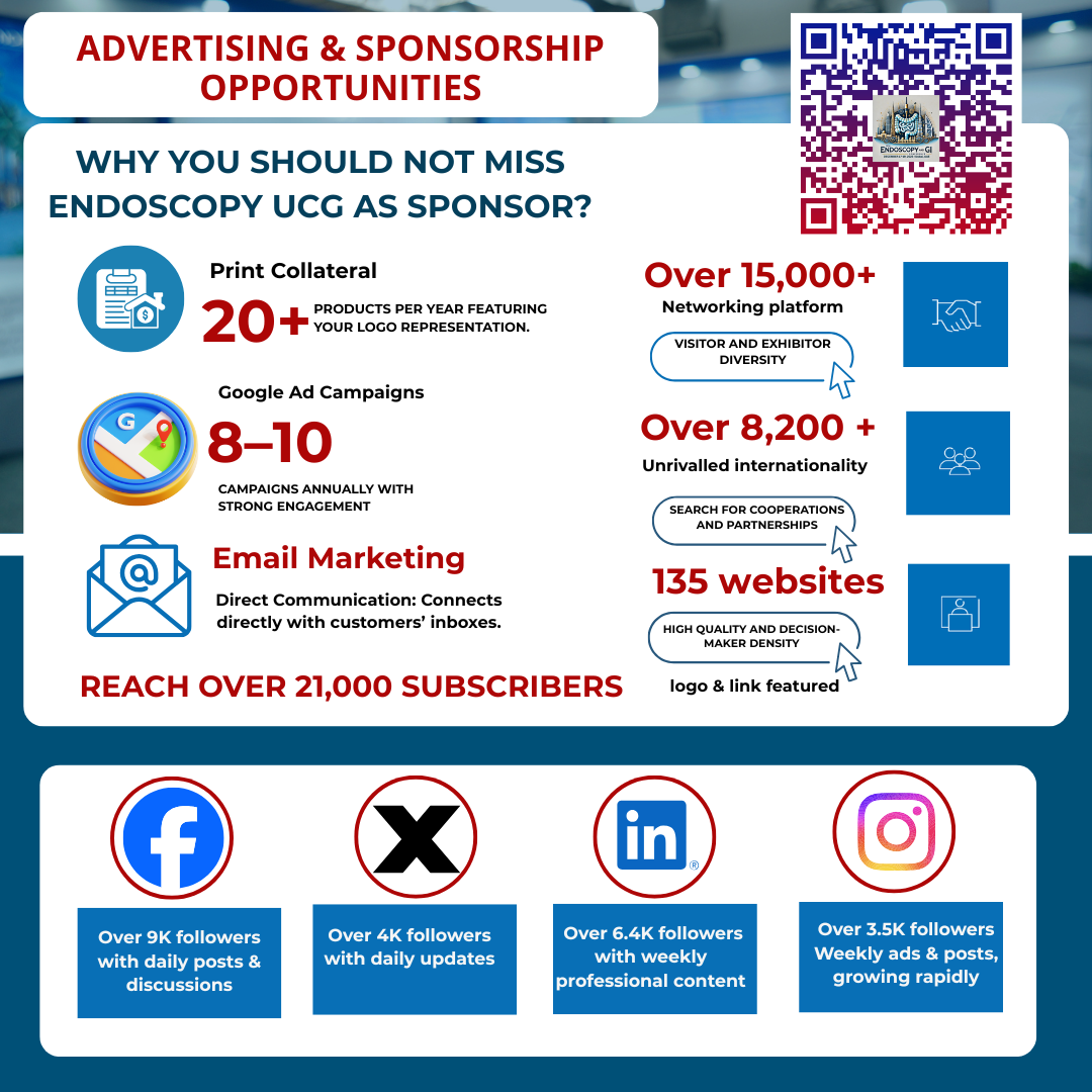 Connecting with a global audience of ENDOSCOPY experts, researchers, and industry executives is made possible by the 15th World Endoscopy and GI Conference, an unmatched opportunity. You will get access to a wide network and raise the awareness of your company in the endoscopy industry by sponsoring this event.